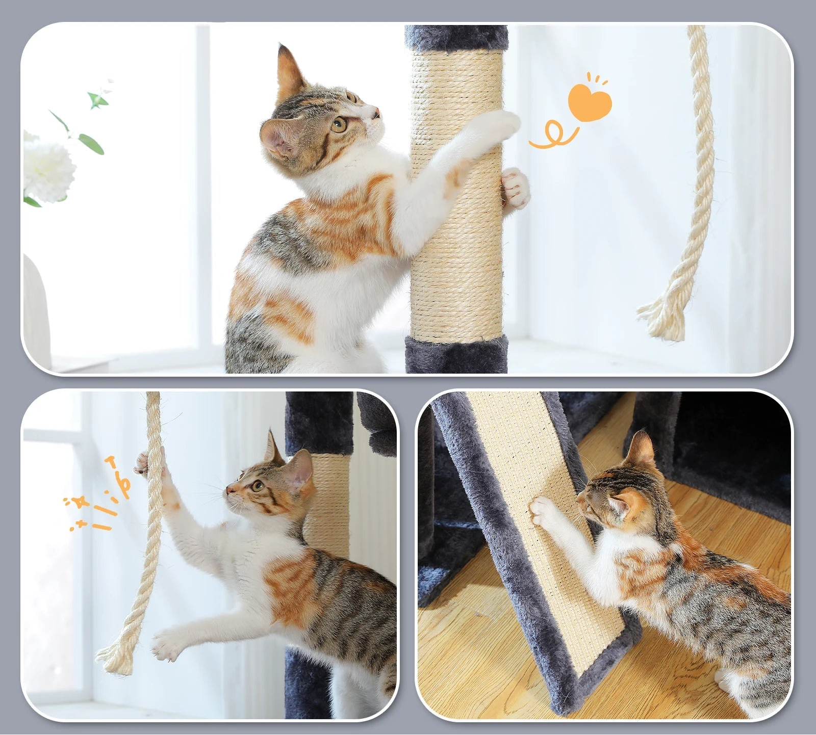 Whether you’ve got one playful kitten or a multi-cat household, the Climb Paws Multi-Level Cat Tree is built to handle it all!